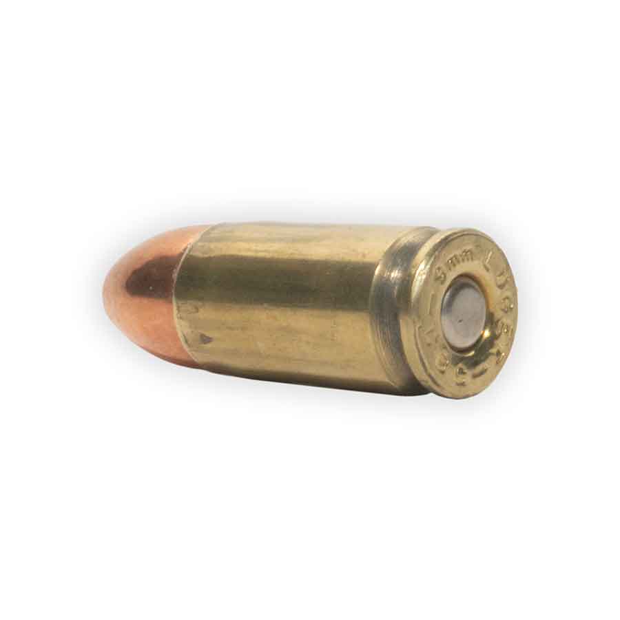 Estas balas "de imitación" de 9 mm son completamente inertes y no tienen pólvora. Están fabricadas con componentes de munición 100 % reales. Están diseñadas para situaciones en las que no sería seguro manipular munición real en el set.