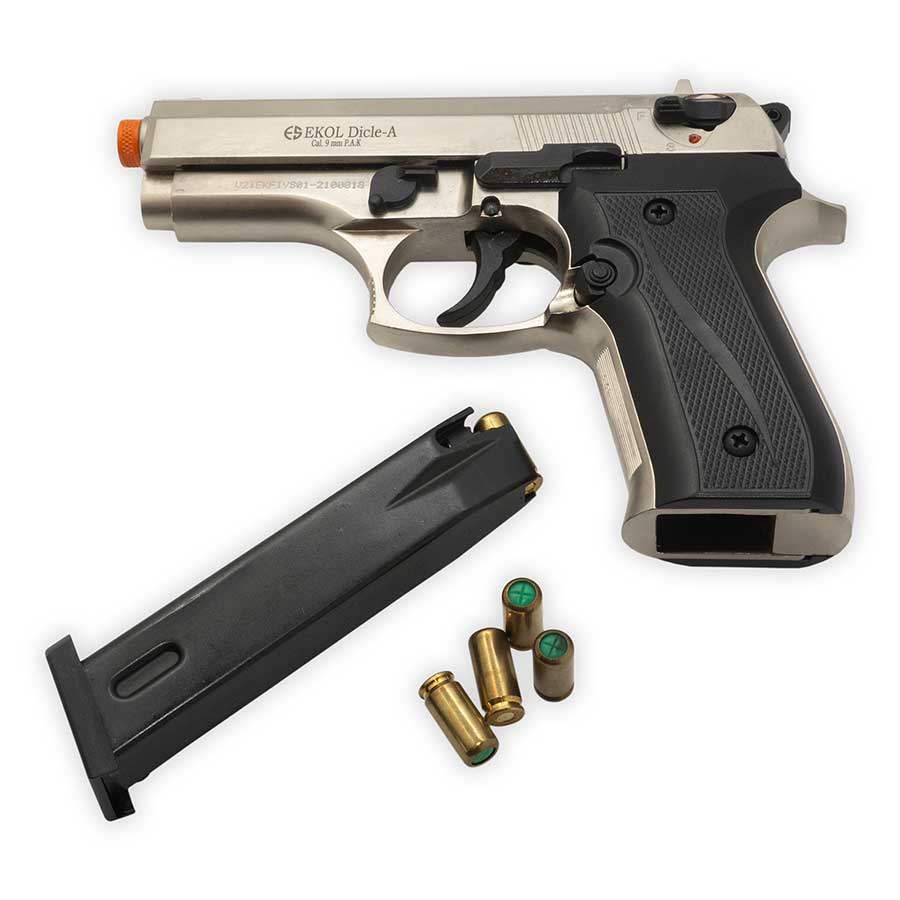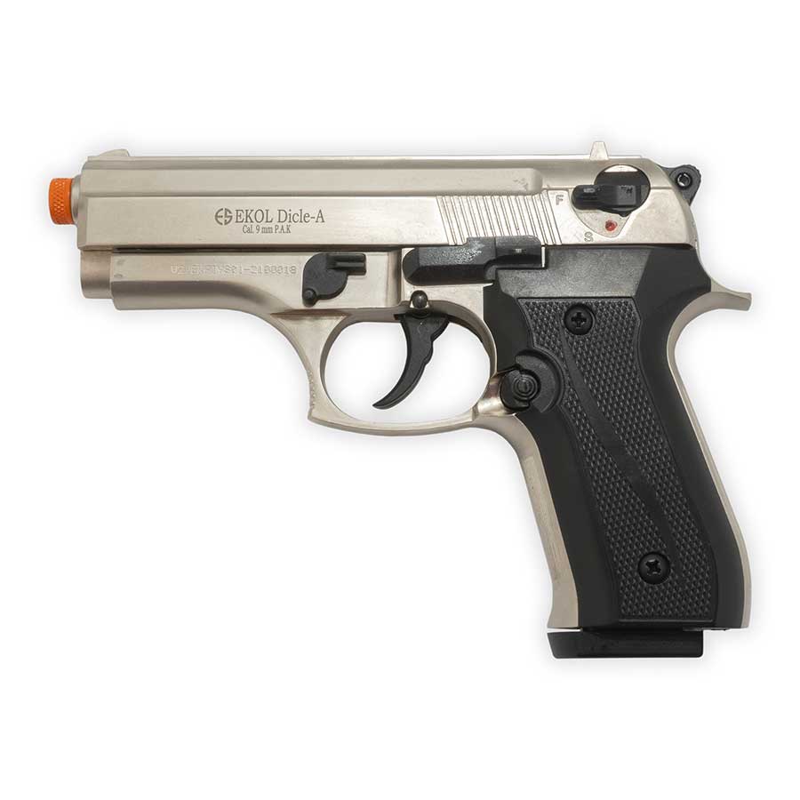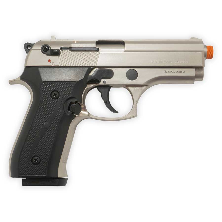 Pistola de fogueo Ekol Dicle 8000 | Semiautomática, de percusión frontal, calibre 9 mm PAK | Acabado en níquel