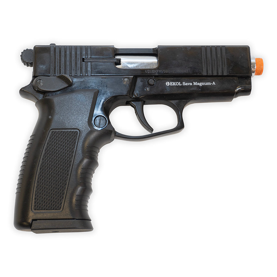 Pistola de fogueo Ekol Sava Magnum | PAK de 9 mm de disparo frontal | Acabado pavonado