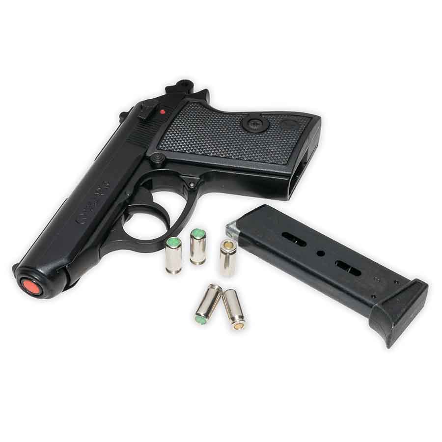 Esta réplica de fogueo se parece mucho al arma de fuego real, tanto en apariencia como en tacto. Para utilizarla, cargue el cargador con cartuchos de 8 mm, tire de la corredera hacia atrás y ¡ya está listo para disparar! Está fabricada por Kimar en Italia.