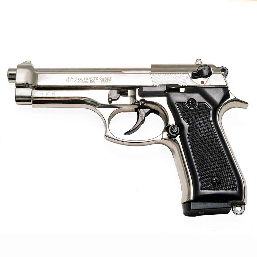 Pistola de fogueo Kimar modelo 92 | Semiautomática, de percusión superior, calibre 9 mm PAK | Acabado cromado